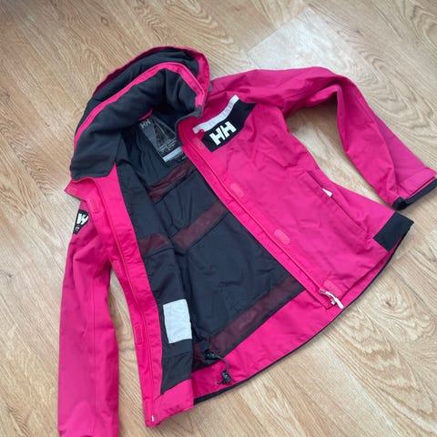 Naisten purjehdustakki/kuoritakki koossa XS. Väri puhtaanvalkoinen, tummansininen ja punainen.