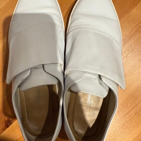 Jonkin verran käytetyt tennarit, joissa pari haaleaa läiskää (näkyy kahdessa viimeisessä kuvassa, muuten valkoiset). Koko 36.