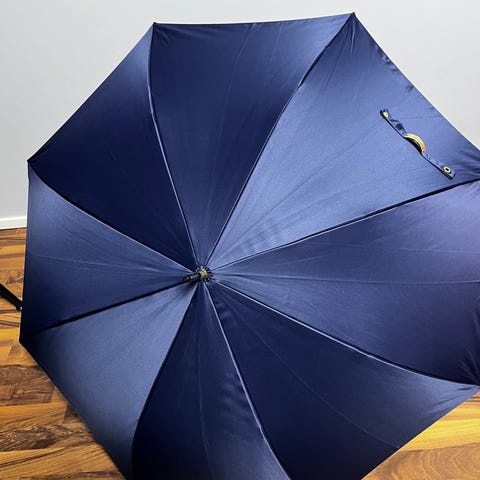 Käyttämätön (laput kiinni) sateenvarjo, jossa Nykin metroasemakartta.