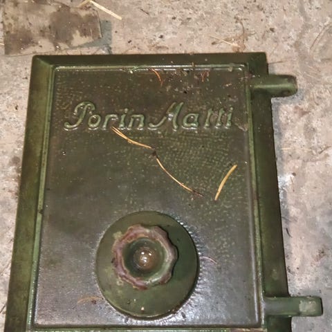 Toimiva, käyttökelpoinen porinmatti antiikin patinalla, tee itse näköiseksi, pintakorroosiota, noin <200> kg? Ei kuljetusta, oma kuljetus/kantajat, Ei postitusta! Täys rautaa. Ulkorakennukaessa säilössä. Keskellä takana alhaalla hormin lähtö ja osat irrallaan nyt. Korkeus 80cm, leveys 50cm, "syvyys" 30cm. Hintapyyntö Tai Tarjous.