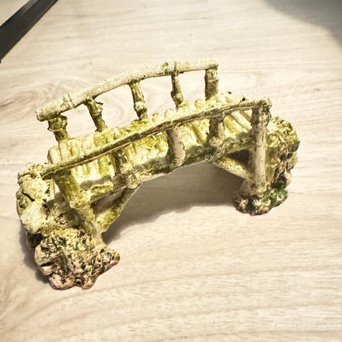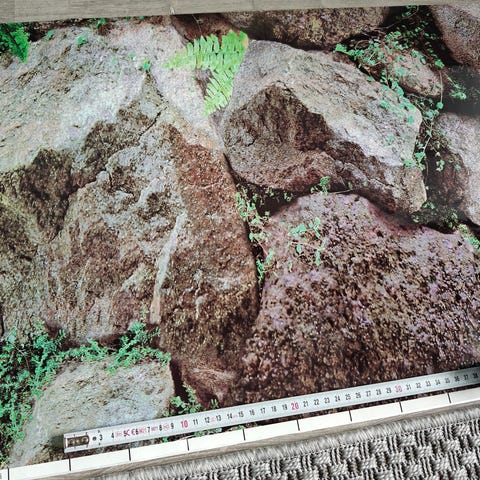 Koristekasveja x5, oikeaa sammalta kosteutta ja maastoa varten sekä 1 pieni ja 1 hieman isompi piiloutumiskivi. Kuvassa näkyy pienempi kivi.