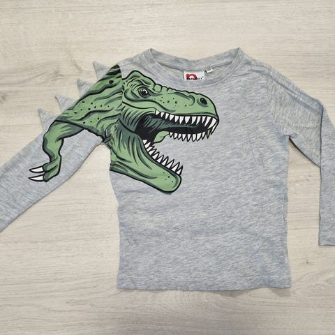 Dinokuvioinen pitkähihainen paita koossa 100cm.