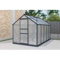 Laadukas ja reilunkokoinen kasvihuone Sinolily 6 m2 ja mukaan vielä samaan hintaan rännit ja sokkeli! Kasvihuoneen katteet ovat 4 mm polykarbonaatti kennomuovilevyä, joka kirkkaana läpäisee ja hajauttaa valon hyvin kasveille, mutta toimii samalla myös lämmöneristeenä! Kasvihuoneeseen mahtuu isommatkin istutukset ongelmitta. Tummanharmaaksi värjätty moderni alumiinirunko eroaa upeasti edukseen. Kasvihuoneessa on myös kaksi tuuletusluukkua optimaaliseen lämmönsäätelyyn. Kasvihuoneen mukana toimitetaan selkeät kasausohjeet.