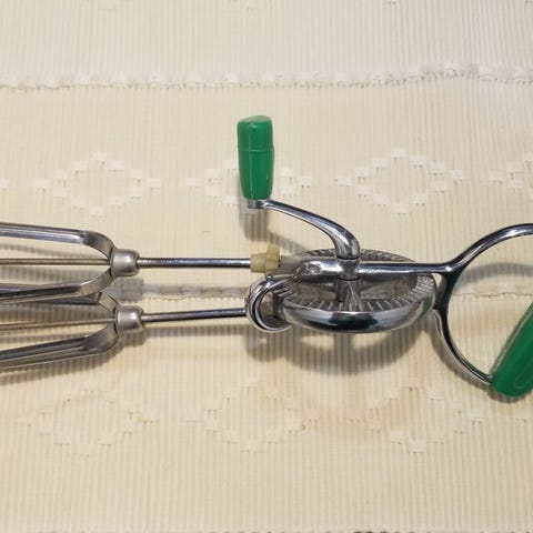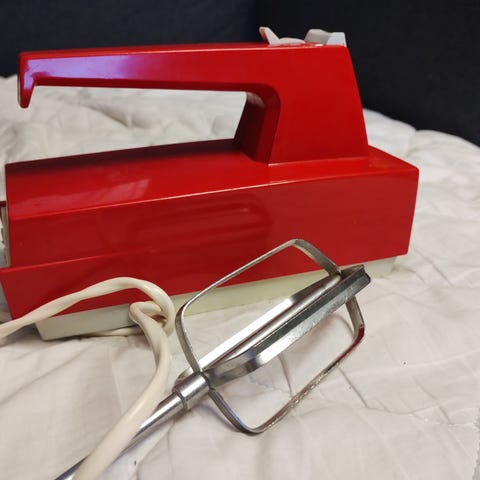 Oranssi DDR Retro sähkövatkain, kaksi irrallista vispilää ja taikinakoukkua
