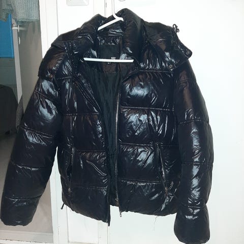 Rennon mallinen vuorillinen takki pehmeää ja pörröistä materiaalia. Kaksinkertainen huppu. Etupuolella vetoketju. Madalletut olkapäät ja pitkät hihat. Hihansuissa ja helmassa päällystetty joustoreuna.