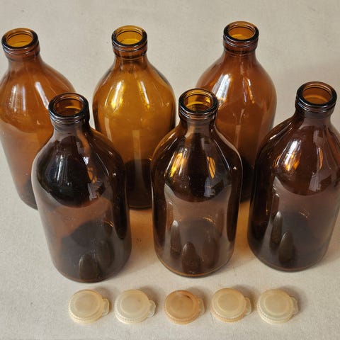 Myydään vanhoja lasipulloja. Hinta 5 e kpl. Mielellään nouto ja käteismaksu.