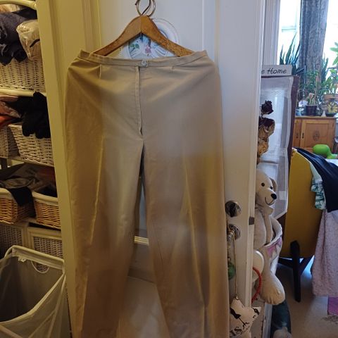 Naisten valkoiset housut, koko M. Housut ovat suoralahkeiset . Sivussa on vetoketju. Soveltuvat monipuoliseen käyttöön.