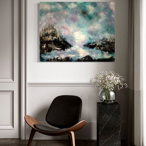 Akryylimaalaus “In the Mist, Between Stars and Clouds"