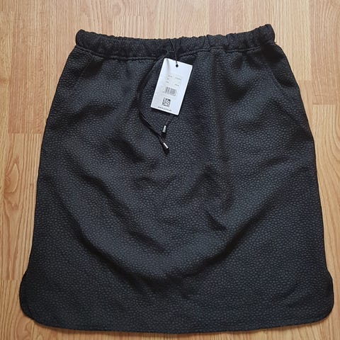 Puhvihihat, röyhelöhelma, huomaamattomat avotaskut sivuilla. Materiaalilapun oon poistanut, ilmavaa ja laskeutuvaa mutta peittävää, ehkä puuvilla-/viskoosi- ja/tai polyesterisekoitetta.