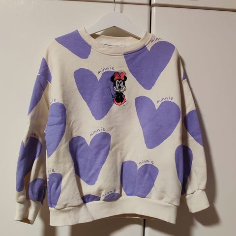 Söpö tummansininen collegepaita koossa 116. Edessä ihanilla pörrökirjaimilla teksti: ”I Like nyc”. Tekstin väri sinapinkeltainen.