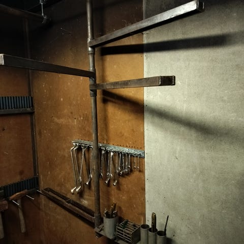 Hiukan työstöä kaipaavat sepän palkeet. Toimivat yhä, palkeiden kanvasosissa hiukan repeämiä.