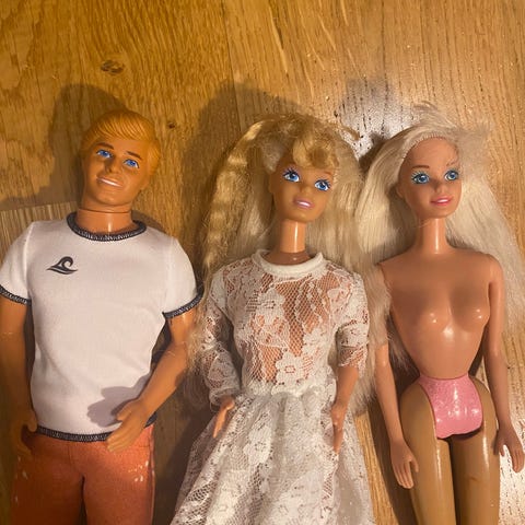 Vintage Mattel barbeja 1960-luvulta. Hyvässä kunnossa. Ken nuken selässä vuosiluku 1968, oikean puolimmainen 1966. Keskimmäinen olikin uudempaa tuotantoa. Hinta 8 € / nukke.