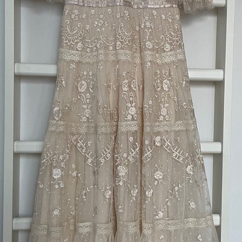 Needle & Threadin viime keväänä ostettu, kerran häissä pidetty Tempest Bodice Ballerina Dress -häämekko/kaason mekko myynnissä champagnen värissä koossa 46 (UK 18) ballerina pituudella.