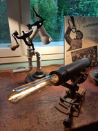 hakusanat metalli retro antiikki keräily industrial teollisuusvalaisin tehdasvalaisin industrialvalaisin työvalo valaisin lamppu steampunk miesluola mancave pöytälamppu pöytävalaisin kierrätys military kypärä sotilaskypärä armeija sinko militaria SA sota pipe pipevalaisin patruunanpuristin aseet valkoinen