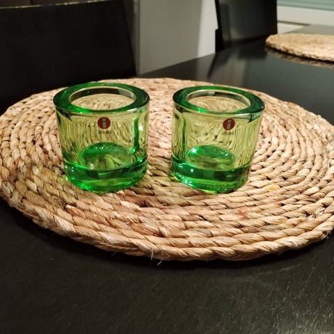 Kaksi kappaletta Iittalan sinistä tuikku kippoa. Ei minkäänlaisia käytönjälkiä, ei muovisia tarroja. Pohjassa teksti Marimekko ja ei muotti numeroa mikä viittaisi vanhempaan tuotantoon.