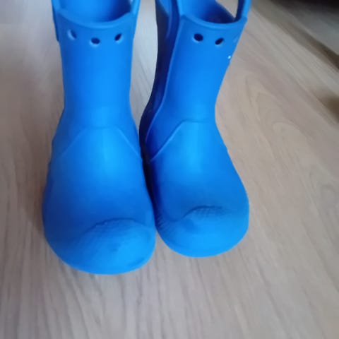Keltaiset Crocs-saappaat. Koko C 9 eli 25-26. Mustikkatahraa ja hiekkatahraa.
