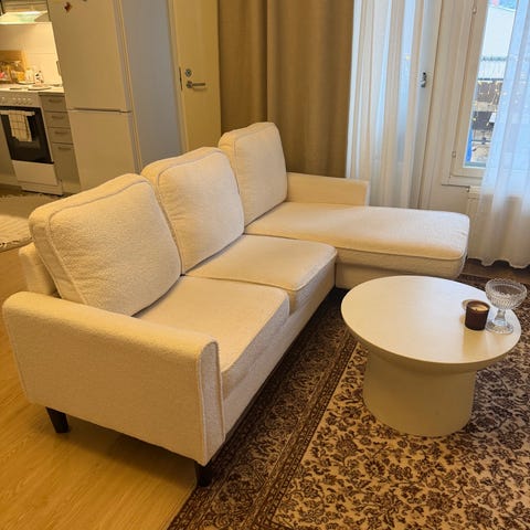 Soita tai laita viestiä, niin teemme laskun, jonka voit maksaa kerralla tai osissa vasta sen jälkeen, kun sohva on kotona.