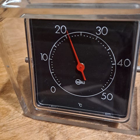 Saunansydän merkkinen keraaminen löylyn lämpömittari.