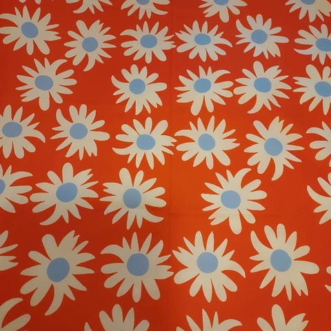 Marimekon punainen kissanminttu puuvilla -kangas. Leveys reunojen kanssa 1,45 m ja pituus 1,52 m. Nouto tai postitus matkahuollon automaatin kautta 6,90 e. Ei toridiiliä.