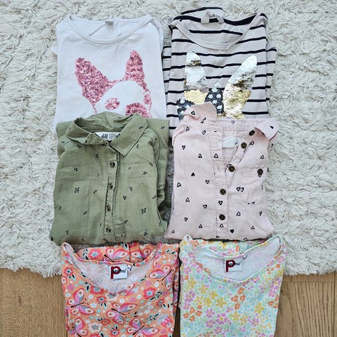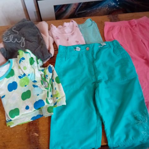 Myydään tyttöjen vaatepaketti. Vaatteet käytettyjä, mutta siistejä ja ehjiä.