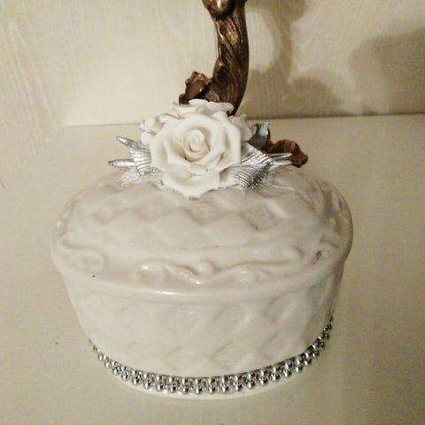 Käsintehty tukeva rasia, puulaji ei tiedossa. Rasian mitat 23cm leveys, syvyys 18 cm, korkeus 11,5 cm. Sisällä sydämen muotoinen peili. Yläosassa kaksi lokeroa.