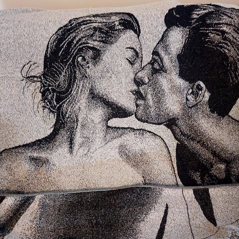 Ok-kuntoinen rantapyyhe.