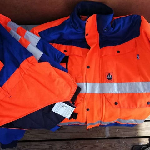 Kestävä EN 342 ja EN 471 -sertifioitu talviavohaalari oranssi/musta tai keltainen/musta huomiovärityksellä.