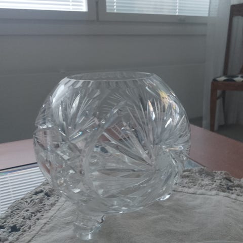Myydään todella upea, virheetön, iso kolmijalkainen kristallimalja. Halkaisija 26 cm, korkeus 18 cm, vetoisuus n. 9 litraa. Vain nouto.