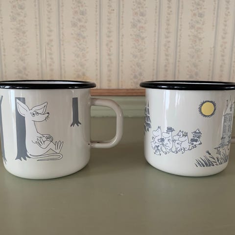 Uudet käyttämättömät vitriinissä säilytetyt Muurlan isot emalimukit vetoisuus 3,7dl.