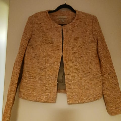Kuin uusi ja itselle pieni jakku, joka on muodikasta buklee kangasta, jakussa on vuori. Ostettu Espanjasta Lagerfeldin liikkeestä. Maksoin 350€,