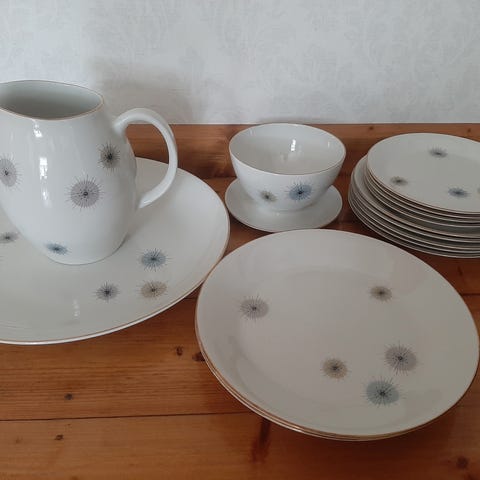 Todella hyvässä kunnossa oleva iso Raija Uosikkisen suunnittelema Jupiter astiasto 1960-luvulta.