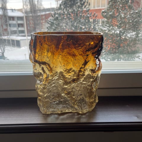 Kumelan 1969 Kaj Blomqvistin suunnittelema ruskea Kallio maljakko.