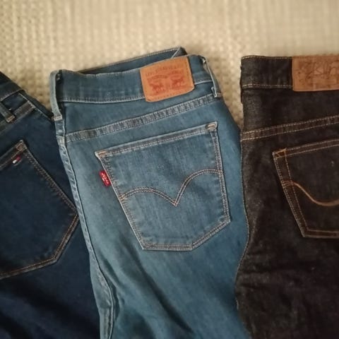Konehelsingin farkut, koko on oikeesti 30" mutta sitä ei ollut listassa. Mustaa farkkua/valkoista lampaan nahkaa. Muutaman kerran käytetty.