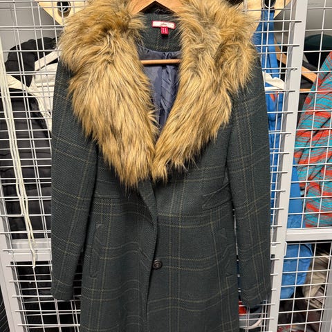 Erittäin hyväkuntoinen klassinen villakangastakki, merkki Jack Wills. Karvakauluksen saa pois. Koko 36. Osa varanapeista tallella. Pieni repeämä sisällä yläselässä, jonka saa korjattua halutessaan.