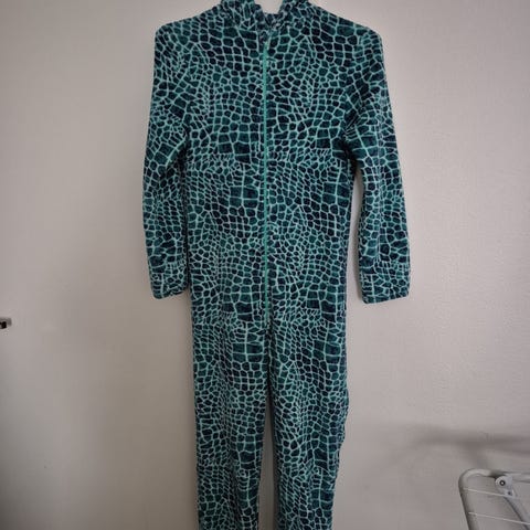 Myydään uusi ja käyttämätön dinosaurus puku jossa pitkähihainen paita ja housut.