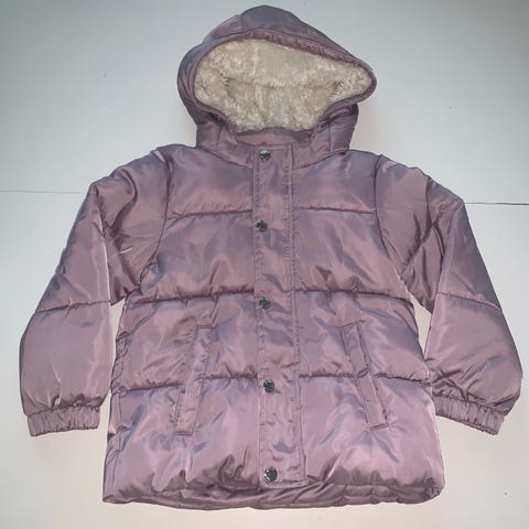 Myydään uutena ostettu, muhkea ja lämmin H&M tyttöjen toppatakki, koko 104. Kangas hieman kimaltava ja hupun saa irroitettua.