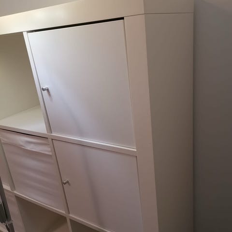 Ylimääräiseksi jäänyt ehjä ja tukevarakenteinen Ikean säilytysklassikko. Hyllyssä on 8 säilytyslokeroa. Vetää tavaraa kivasti, ja Ikeasta saa halutessaan edullisesti hyllyosiin paljon lisäosia, esimerkiksi vetolaatikoita, ovisarjoja, lisähyllyjä tai säilytyskoreja. Palvelee erinomaisesti myös ihan tällaisenaan. Meillä tässä on säilytetty lp-levyjä, ja toimii erinomaisesti myös siinä käytössä. Hyllyssä on hieman käytössä tulleita jälkiä paikoin. Voidaan pitää lattialla joko vaaka- tai pystysuuntaisesti. Koko 77 x 147 cm.