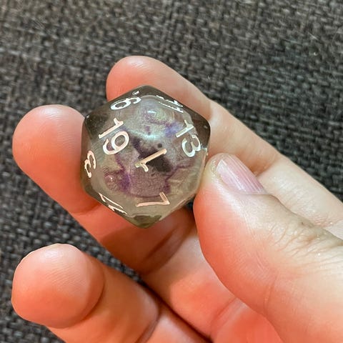 Sisällä lohikäärmeen silmä. Kaunis hohde. Tämä on melko isokokoinen noppa.