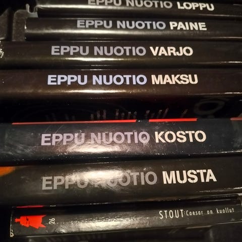 Eppu Nuotion Loppu, Maksu, Varjo ja Paine. Siististi kertaalleen luettu, käytönjälkeä vain kansien kulmissa. Koiratalous.