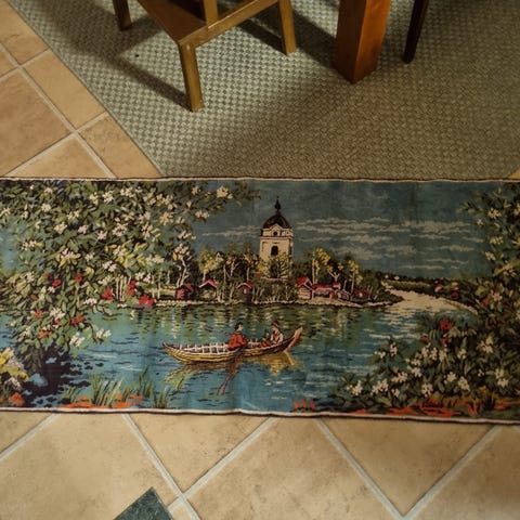 Vanha hyväkuntoinen samettipintainen hirvi gobeliini.