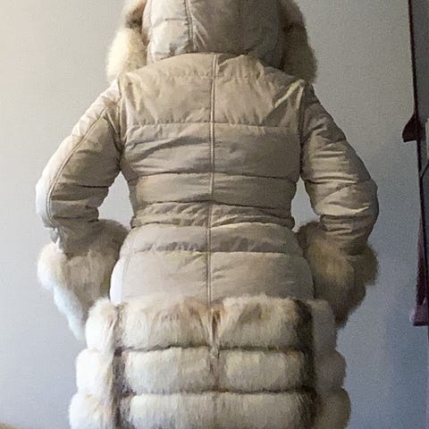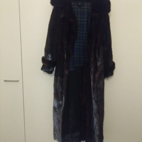 Naisten pitkä turkki, pituus 122 cm. Koko 38. Tummanharmaa, hyväkuntoinen karva, vuoressa on repeämiä, mm. sivusauma auennut ja helmassa reikä. Saa käydä sovittamassa ennen ostoa. Nouto!