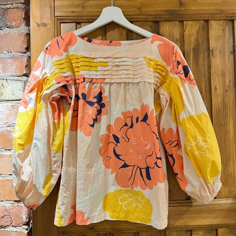 Marimekon Mukura paita. Kauniit pliseeraukset pääntiessa ja hihoissa. Jäänyt lähinnä kaappiin. Pesty juuri hajusteettomalla pesuaineella. Kainalo-kainalo noin 47 cm. Pituus niskasta noin noin 56 cm.