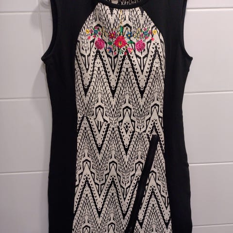 Käyttämätön , uniikki, mustapohjainen, pitkähihainen, u- kaula-aukko, midipituus, helmassa pitsiä, koko xl-l