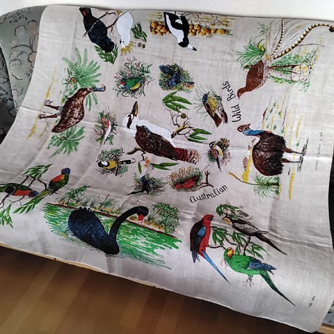 Vuosikymmeniä vanha käsinkirjottu liina. Ehjä ja siisti. Koko 53cm x 56cm.