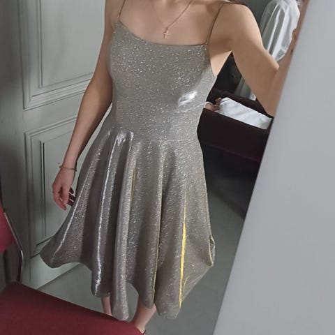 Hyvässä kunnossa oleva kerran rippijuhlissa päällä ollut shampanjan värinen rippimekko koossa xs.