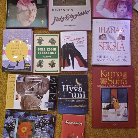 Kirjapaketti, reilusti luetussa kunnossa, ehjiä ja tiukasti kasassa. Säilytetty kylmässä vintissä vuosia siististi. Pari kirjoista vanhahtavia tyyliltään, mutta suosittelen kokemaan kuitenkin, ajatuksia ja tunteita herättäviä kirjoja kaikki.