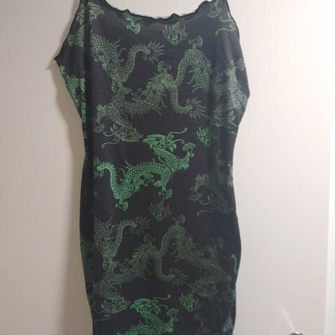Myydään käyttämätön ja uusi lohikäärme kuosinen paita, jossa avonainen selkä.