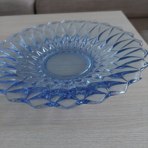 Kaunis lasitarjotin, jossa on kaunis hopean värinen