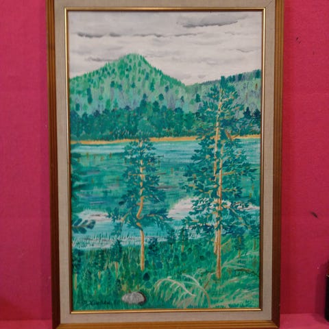 P. S. öljyvärityö Kukka-asetelma vuodelta 1989. Työn korkeus on 60 cm ja leveys 49 cm. Kehys 68 X 57 cm.