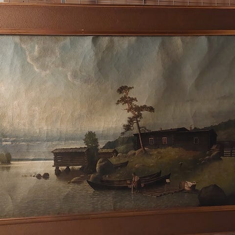 hyvässä kunnossa ja kehyksetkin siistit. Taulu on niin suurikokoinen, ettei lähetys onnistu. Kulkeutuu kuitenkin tarvittaessa Hki-Turku välille omien ajojen mukaan..